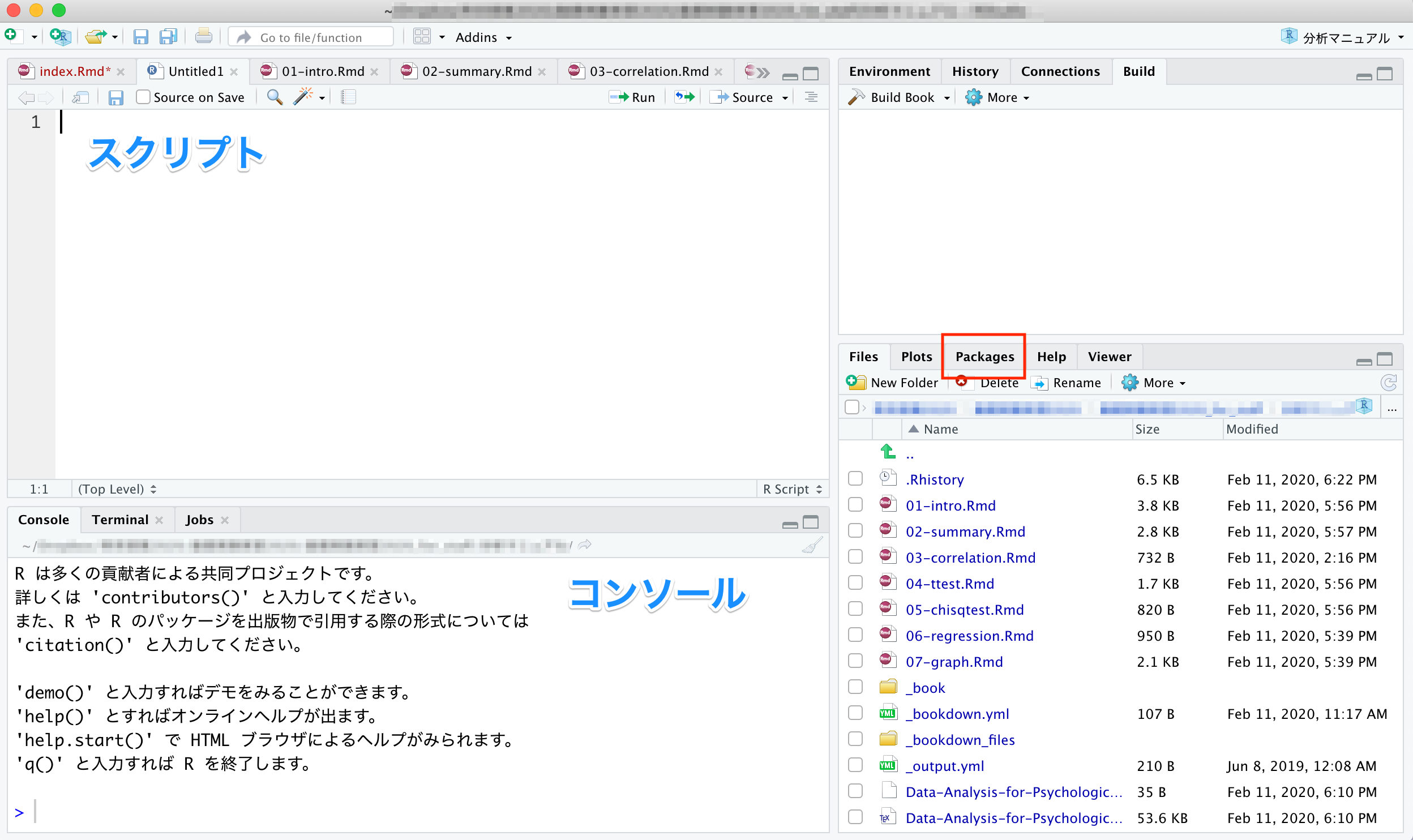 (このテキストの手順でうまくいかない場合は、「R インストール」などでWeb検索してみよう)パッケージ