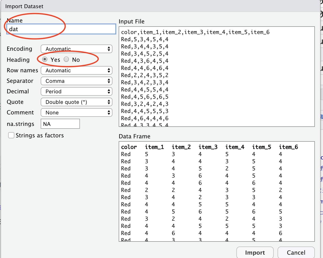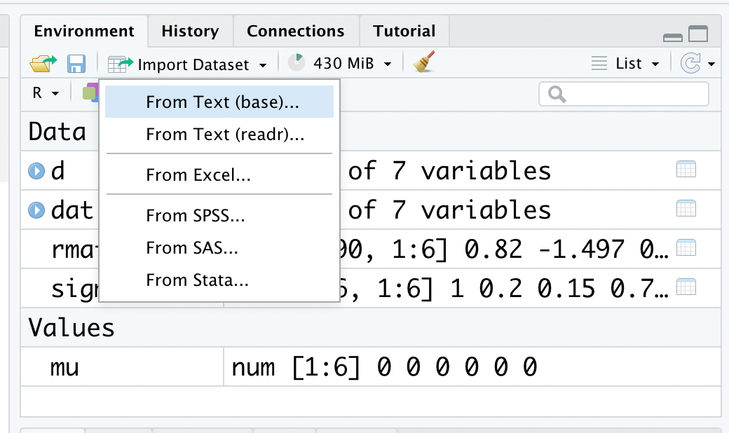 上述の例では自分でプログラムを書いてデータフレーム等を作成したが、大抵の場合はデータを ファイルなどに保存したデータを読み込んで使うことが多い。以下では、RでCSVやExcelファイルなどを読み込む方法を確認していく。
