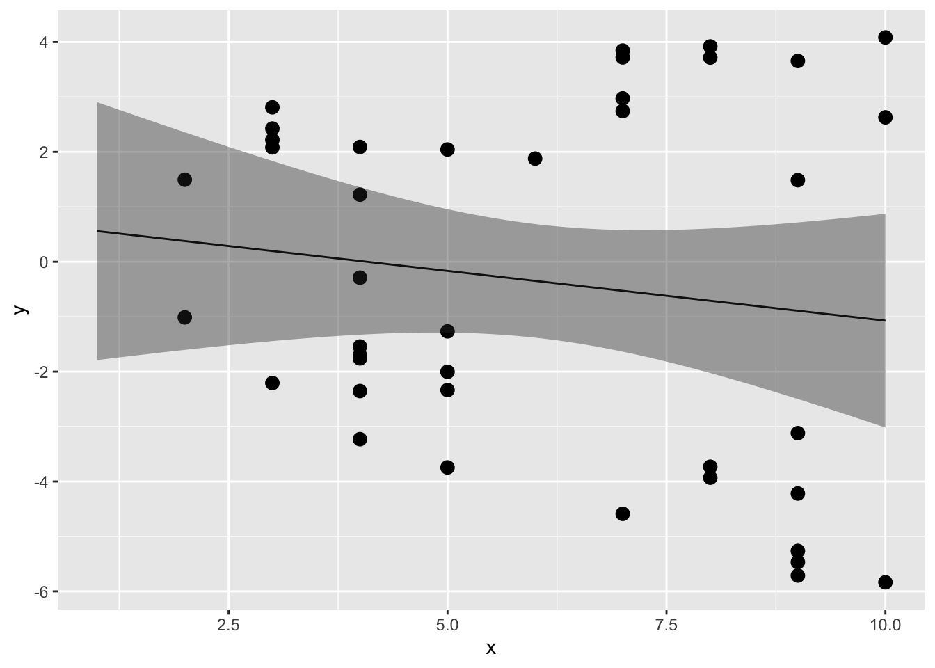 ## When m is INSIDE the interval [-3.18, 1.20], the slope of x is p < .05.