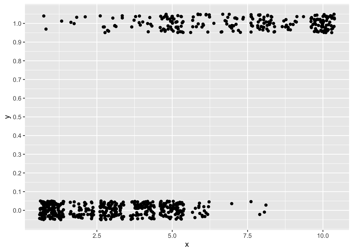 ggplot2::geom_jitter(data = dat, aes(x = x, y = y), height = 0.05) +