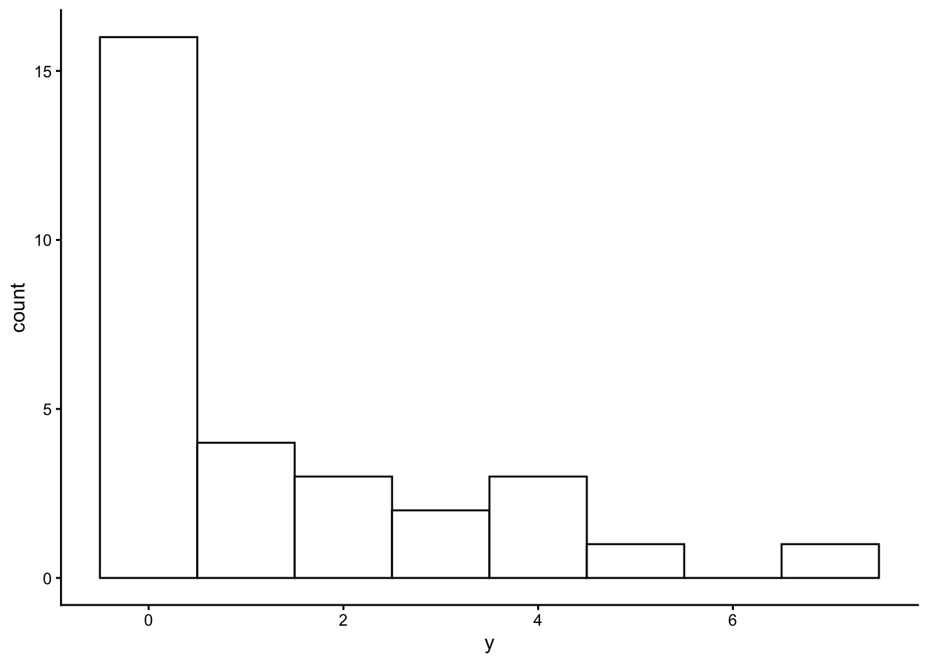 ggplot2::geom_histogram(data = d_zip, aes(x = y), binwidth = 1, fill = "white", color="black") + theme_classic()